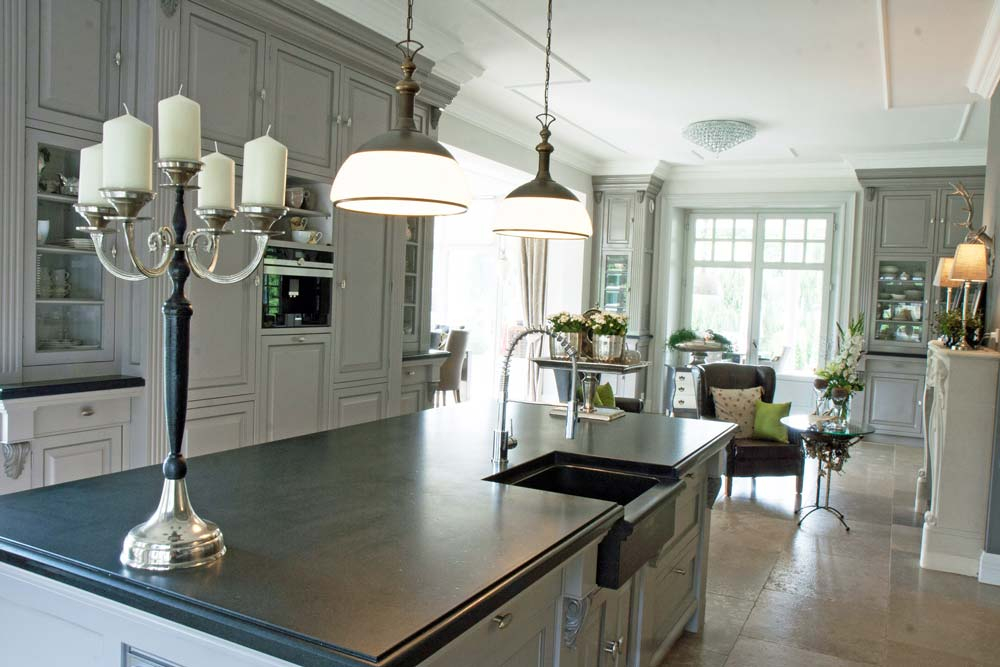 Deze fraaie landhuiskeuken is geplaats in een herenhuis in Duitsland en bestaat uit meerdere segmenten: